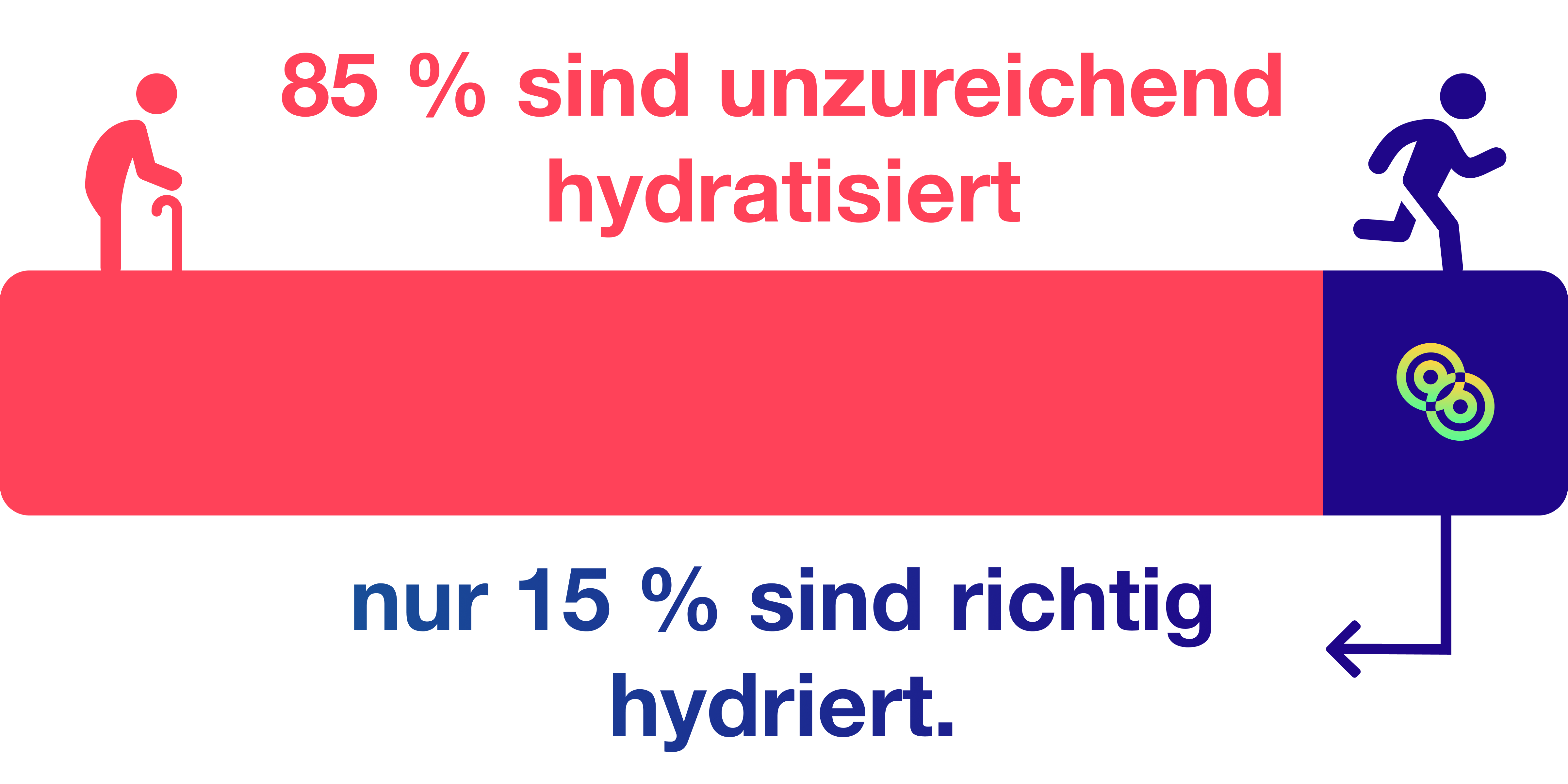 Jüngste Studien zeigen, dass nur 15% der niederländischen Erwachsenen die empfohlene tägliche Wasserzufuhr von 1,5-2 Litern erreichen. Indem Sie Elektrolyte in Ihre Flüssigkeitszufuhr einbauen, können Sie Ihr Wasser stärker für sich arbeiten lassen und so möglicherweise zu der Minderheit gehören, die ihren täglichen Flüssigkeitsbedarf erfolgreich deckt.